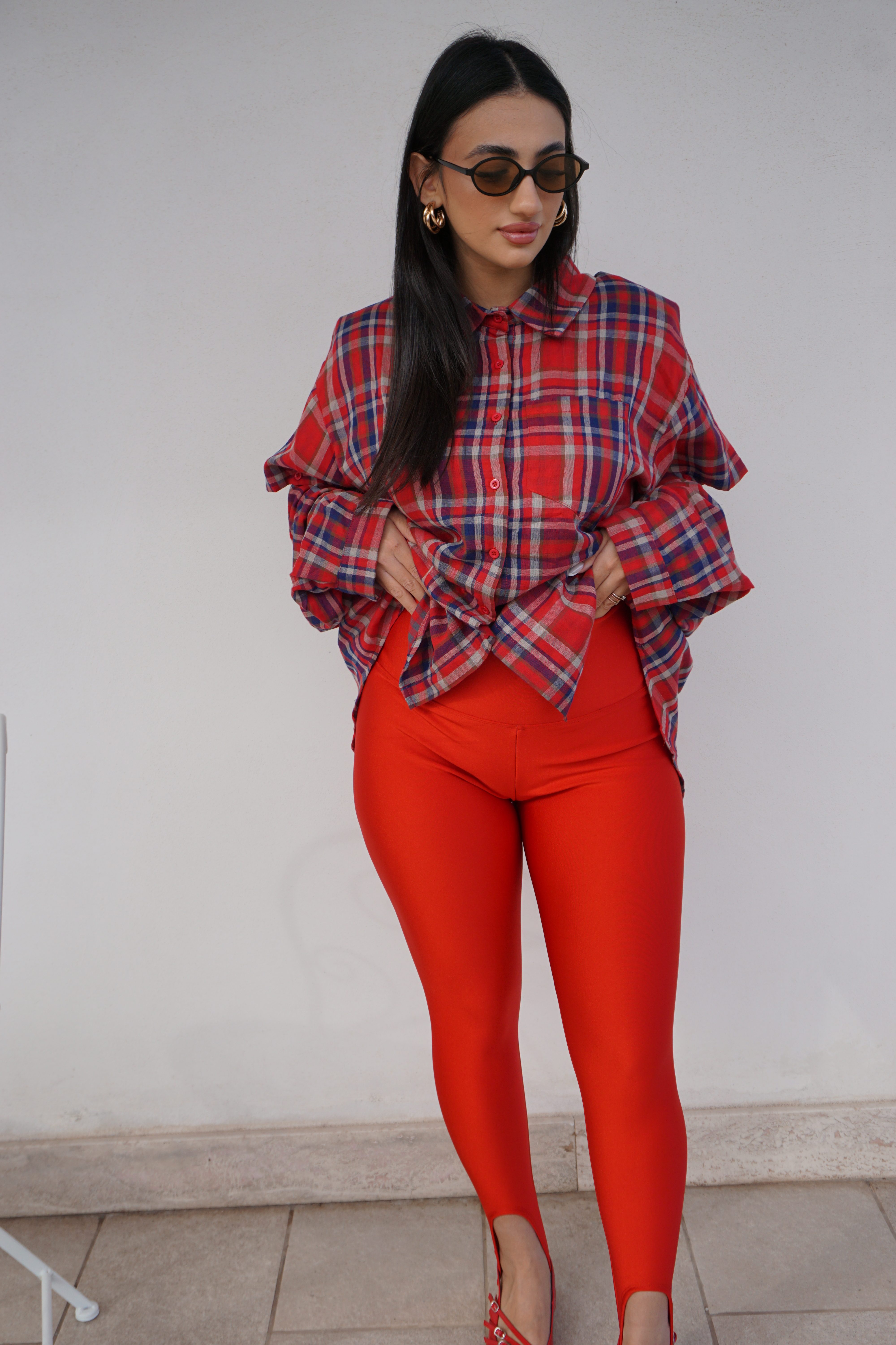 Il colore rosso brillante dona carattere e personalitร , rendendoli ideali sia per outfit casual con camicie oversize, sia per look piรน fashion con tacchi o stivaletti.