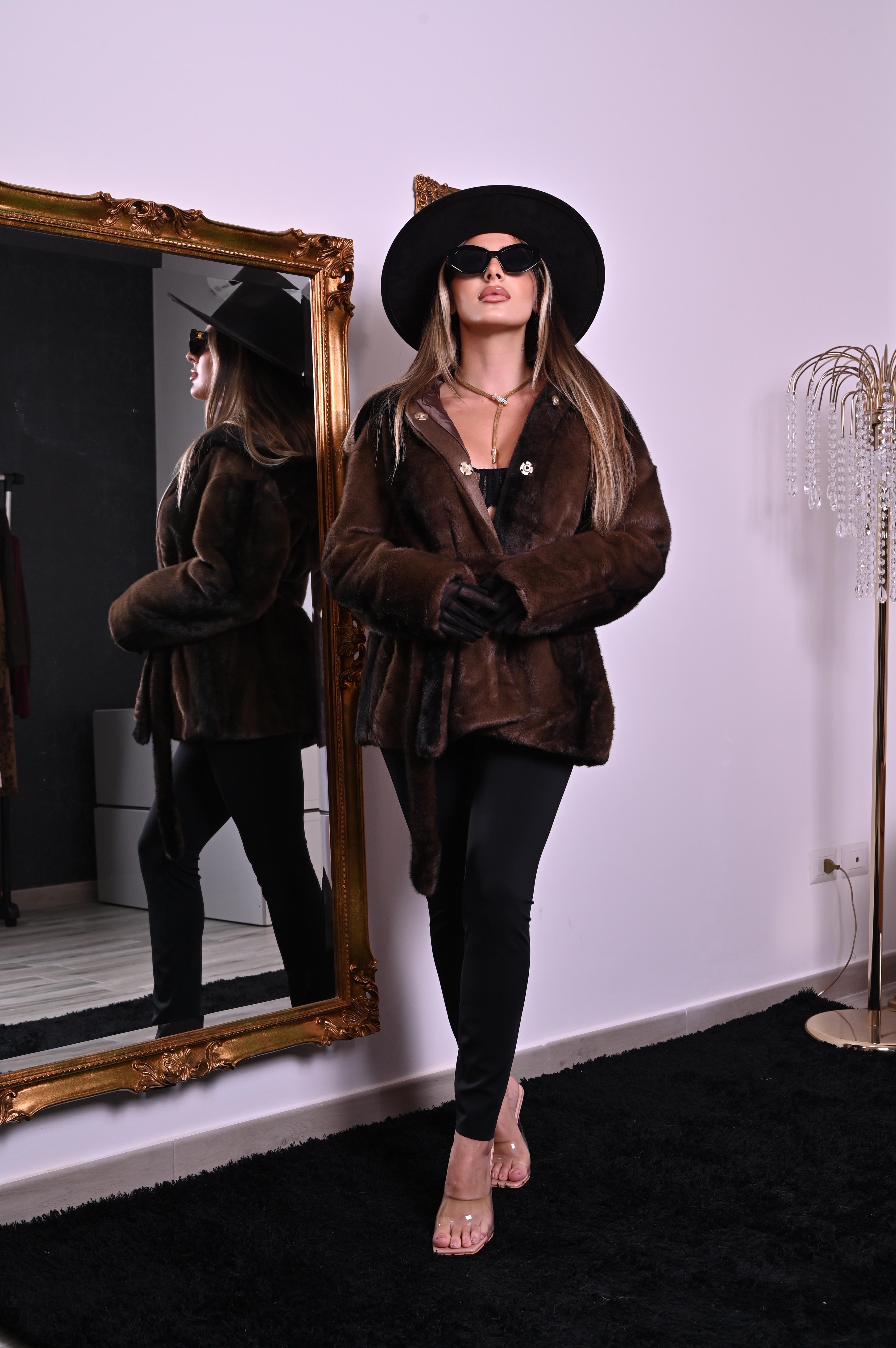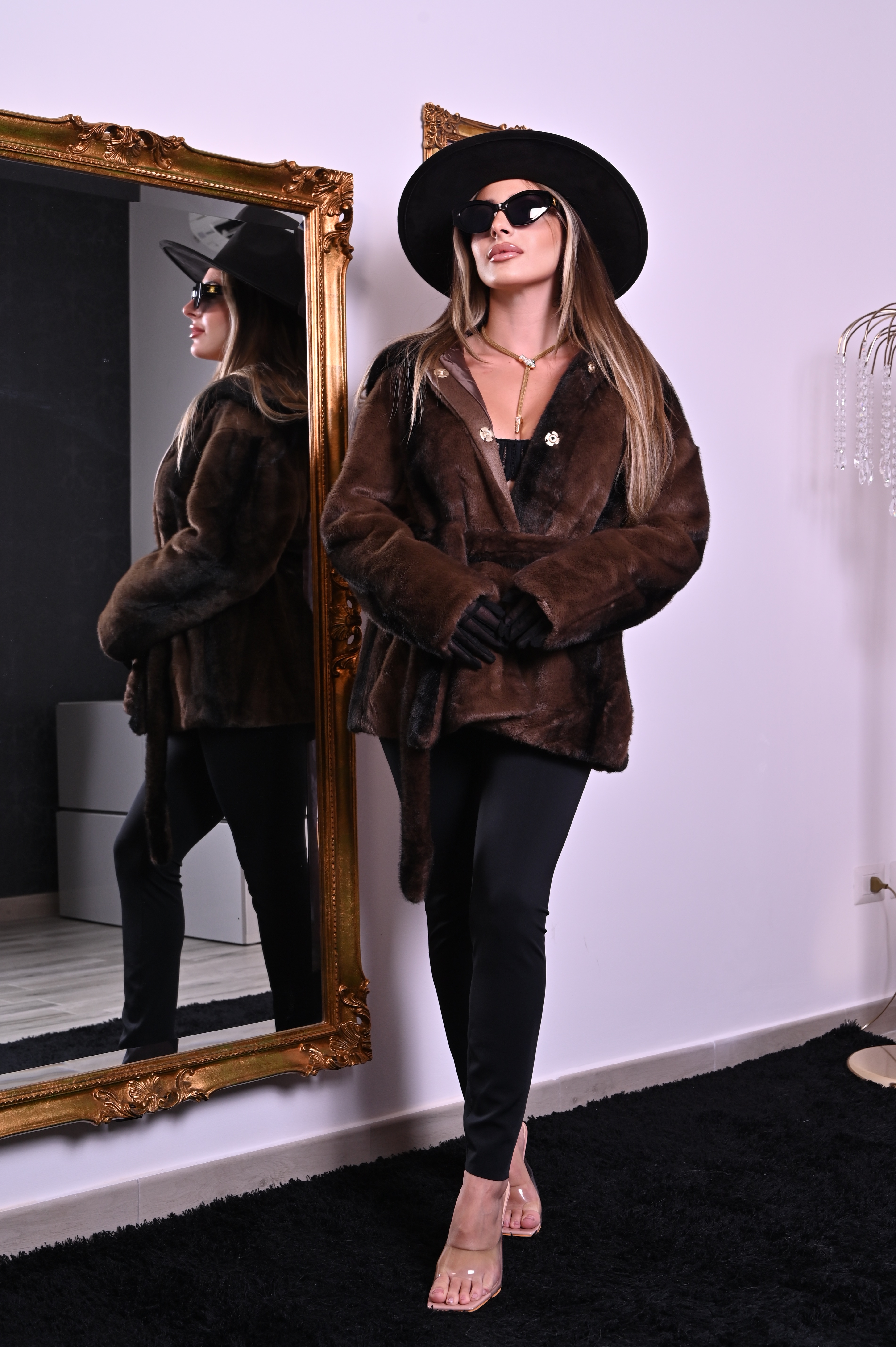 La Pelliccia Royal Brown è il capo perfetto per aggiungere charme e carattere ai tuoi outfit invernali. Realizzata in eco-pelliccia morbida e corposa, presenta una tonalità intensa di marrone con leggere sfumature più scure che valorizzano la silhouette.